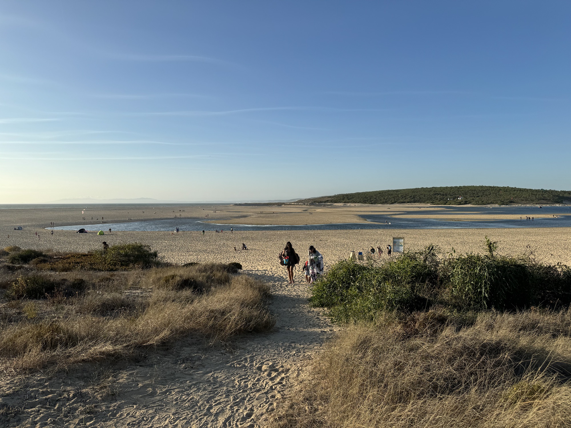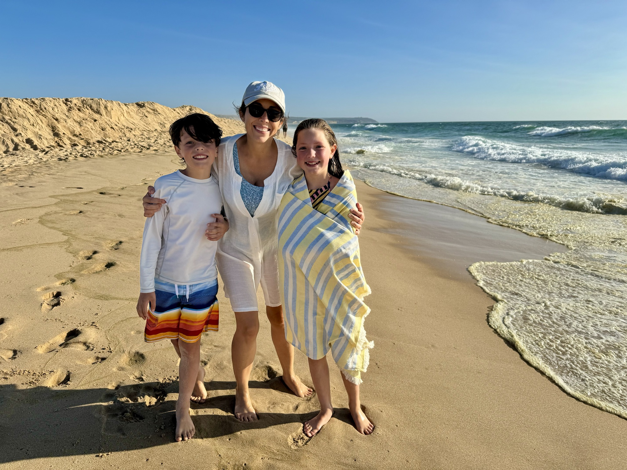 This first week has been amazing! Alongside our work, we’ve had the chance to embrace the beach life. Matthew and I have been starting our days with invigorating morning walks, runs, or swims at the beach. We’ve visited the nearby Carcavelos beach multiple times, and we’ve even tested out the easy 1-mile walk to get there. On Sunday, we ventured an hour away to Lagoa da Albufeira with our friends and enjoyed a fantastic day at the beach. The kids had a great time playing at the lake, while we soaked in the beauty of the rough sea and its stunning waves. Later in the afternoon, we were treated to the lively sight of kite surfers having fun on the waves.